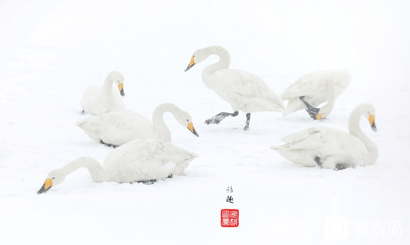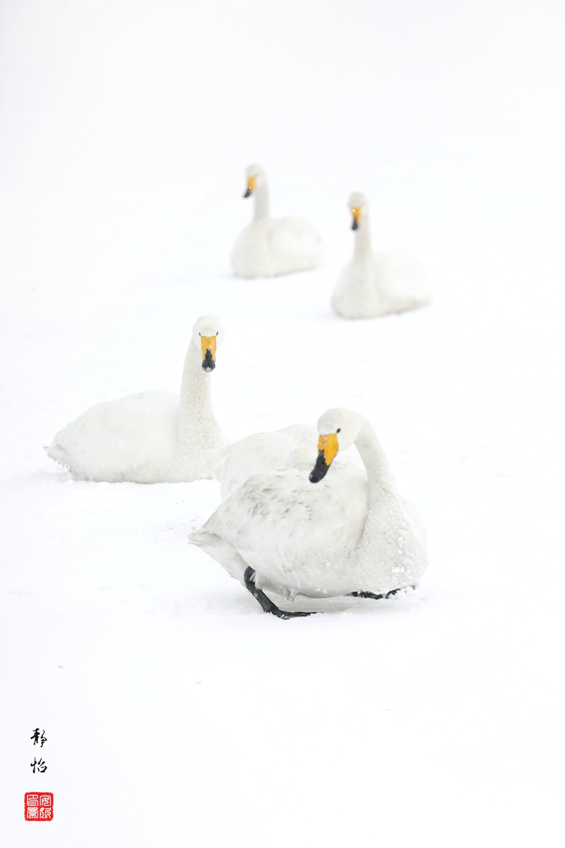 天鹅们沐风沐雪,或在冰水中“梳洗打扮”,或在漫天飞舞的雪花中振翅飞翔,把冬日的天鹅湖变成梦幻仙境。