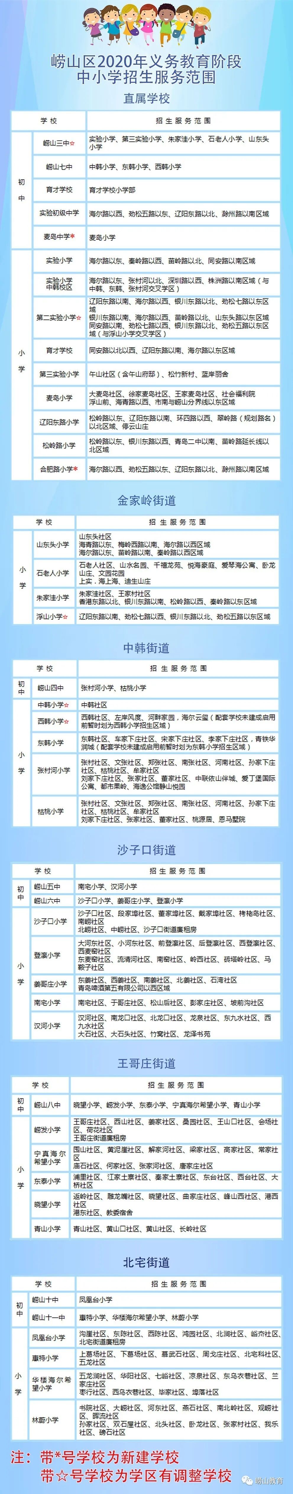 2020青岛市四区公办初中学区