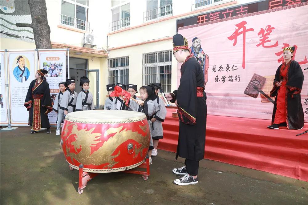 衣冠正豪气,朱砂智已启,孩子们们是聪明乐学的,你们一定会更优秀,大家要立下志向,从小树立远大理想,让我们用鼓声鸣响我们的志向。