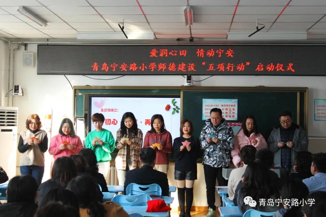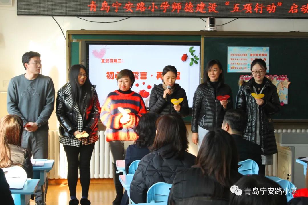 今年将开启十四五学校教育的新篇章,学校级部组长团队、教研组长团队、工会组长团队结合工作岗位职责郑重承诺。再启程,将在思想上严格要求自己,在行动上扎实落实,把良好的师德师风融入平日教育教学中,牢记“立德树人”根本任务,争做四有好老师,助推“爱润心田情动宁安”师德建设品牌向纵深发展。