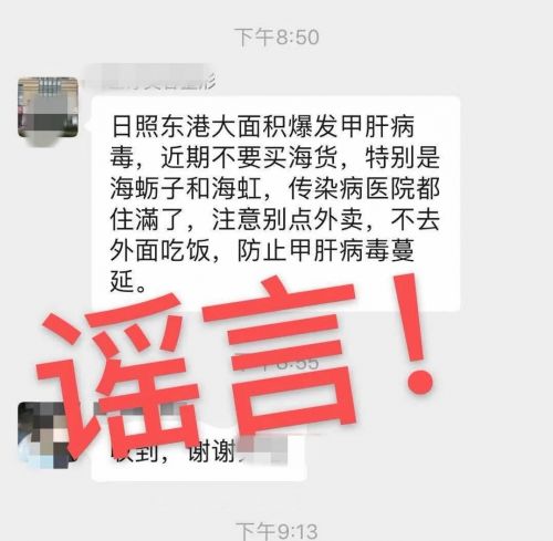 近日,不少人在微信群看到这样一则信息:“日照东港大面积暴发甲肝病毒近期不要买海货,特别是海蛎子和海虹。传染病医院都住满了,注意别点外卖,不去外面吃饭防止甲肝病毒蔓延。”