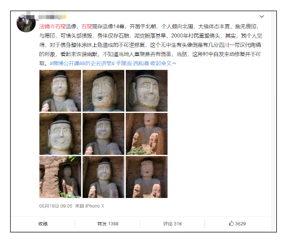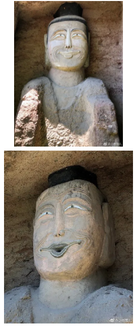 石堡镇文化站站长称:“1998年村民发现佛像头部有损坏,便请匠人做了修缮,原貌没有大的改变,这些属于"笑佛",笑也是其特征。”