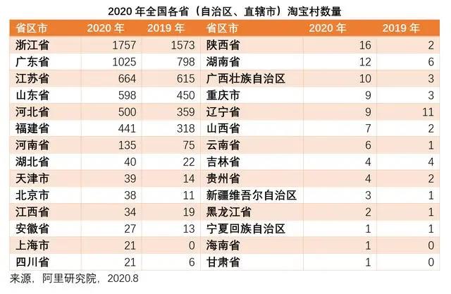 2020年全国淘宝村: