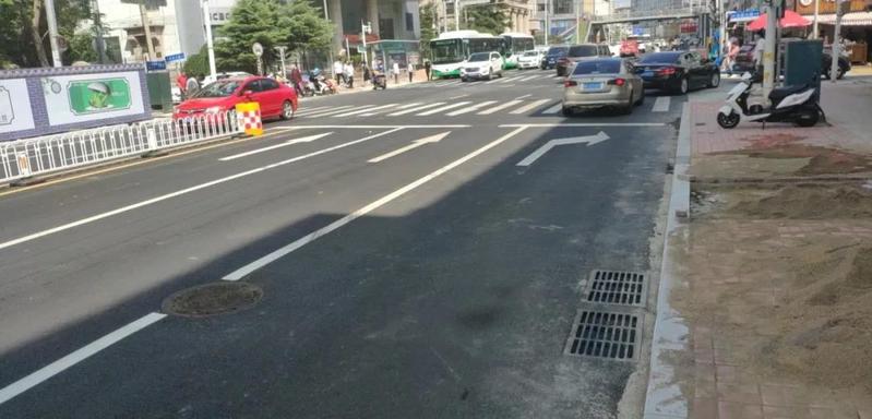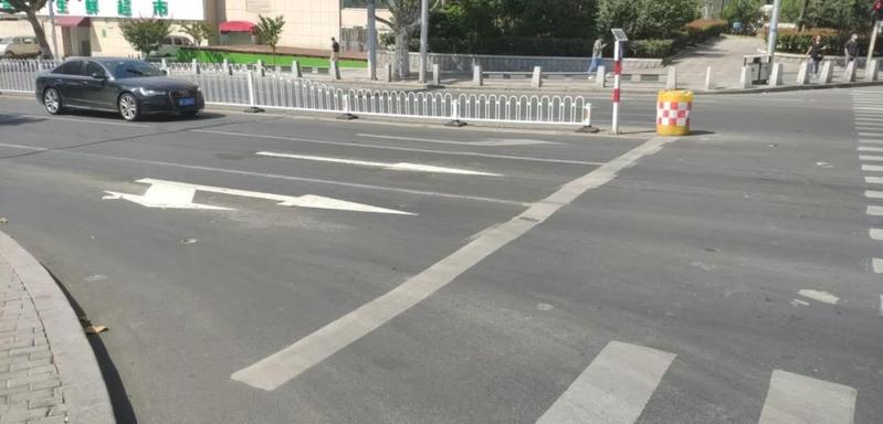 南进口渠化为三进两出,车道属性为“2直行+右转”▼