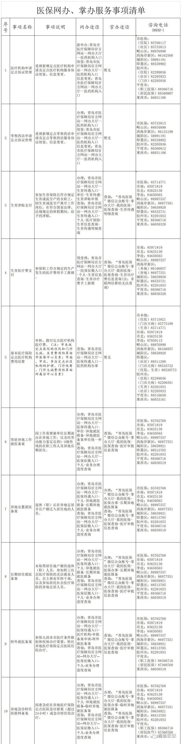 为减少人员流动带来的交叉感染风险,医保业务大力推行“不见面办理”。青岛市医疗保障局建议市民通过青岛市医疗保障局网办大厅、“青岛医保”微信公众号等线上方式办理业务,尽量避免到大厅现场办理。目前青岛市医疗保障局对外发布的医保政务服务事项全部实现网上办理,部分事项还可通过掌上办理。