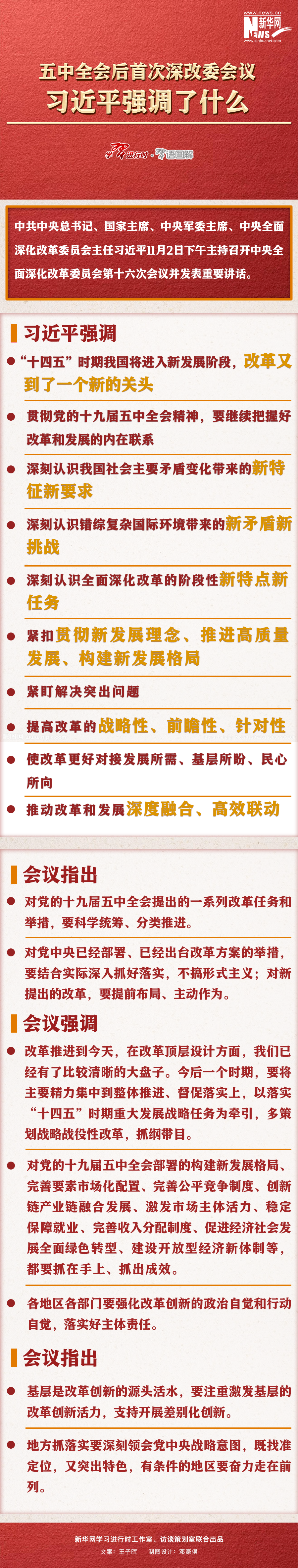 习近平主持召开中央全面深化改革委员会第十六次会议强调 全面贯彻党的十九届五中全会精神 推动改革和发展深度融合高效联动 李克强王沪宁韩正出席