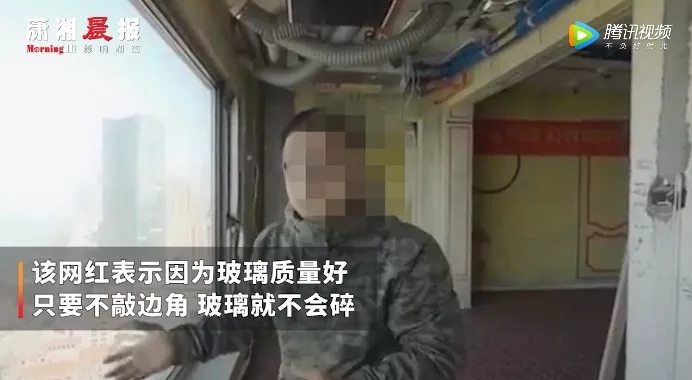 据悉,该网红拍摄地点位于长沙某楼盘41层,玻璃宽5米,整块落地窗玻璃重达2000斤,要二十来人才能移动它。