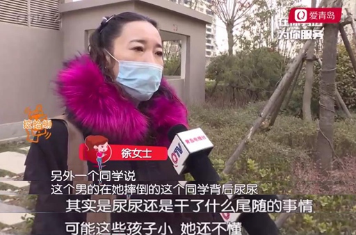 徐女士:另外一个同学说,这个男的在她摔倒的这个同学背后尿尿,其实是尿尿还是干了什么尾随的事情,可能这些孩子小,她还不懂。