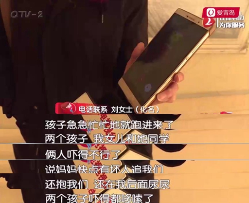 电话联系刘女士(化名):孩子急急忙忙的就跑进来了,两个孩子,我女儿和她同学,俩人吓得不行了,说妈妈快点有坏人追我们,还抱我们,还在我后面尿尿,两个孩子吓得都哆嗦了。