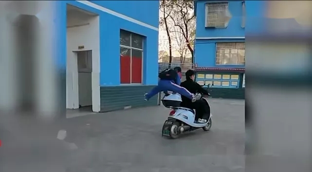潇洒地空翻跳上电瓶车