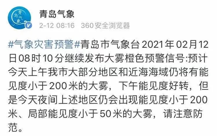 【青岛市区】今天夜间,多云间晴,有雾,南风3到4级,明天白天,多云间晴,有时有雾,南风3到4级,相对湿度60%-100%,明天最低气温4℃,最高气温10℃。